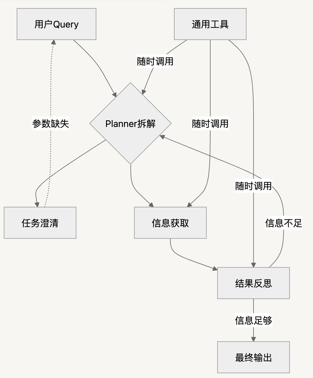 | 流程 | 线性:搜索→回答 | 循环 :感知→决策→行动 |