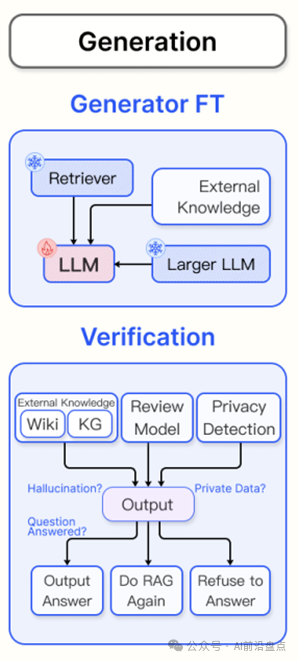 在生成部分除去微调以外还有一个重要步骤就是验证信息:验证这个地方会比较 tricky 了,这部分其实很多人都有过探索,但是想要完美的实现都是很困难的。
