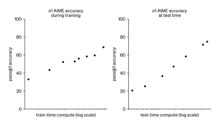 随着训练时的计算量和测试时的计算量的增加,模型性能也会随之提升。