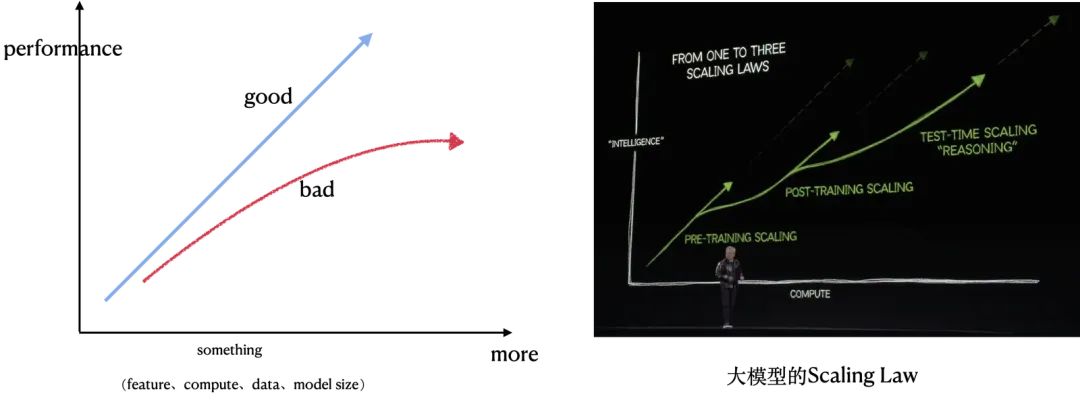 新的扩展维度:Al能力的提升不再局限于预训练阶段,还可以通过在 Post-Training 阶段中提升RL训练的探索时间和增加模型推理思考时间来实现性能提升,即Post-Training Scaling Laws 以及 Test-time scaling Resoning ;