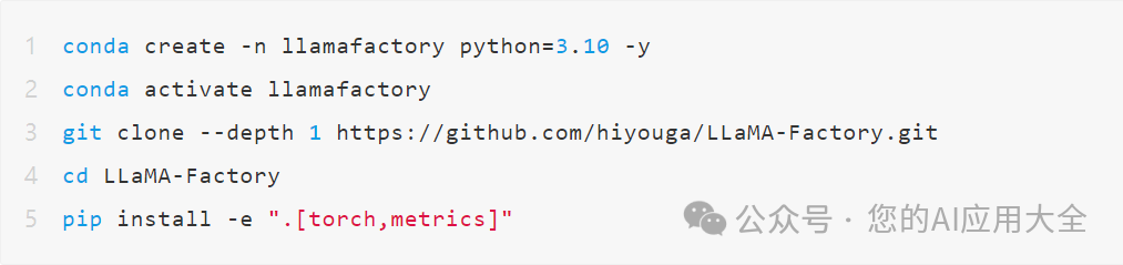 1.从https://github.com/hiyouga/LLaMA-Factory,将源码下载到本地安装