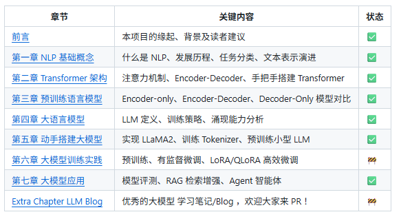 happy-llm就是你一直在找的保姆级教程!覆盖了从原理到实践的全过程,手把手带你进入LLM(大模型)的奇妙世界。是一个系统性的 LLM 学习教程,将从 NLP 的基本研究方法出发,根据 LLM 的思路及原理逐层深入,依次为读者剖析 LLM 的架构基础和训练过程。同时,我们会结合目前 LLM 领域最主流的代码框架,演练如何亲手搭建、训练一个 LLM,期以实现授之以鱼,更授之以渔。希望大家能从这本书开始走入 LLM 的浩瀚世界,探索 LLM 的无尽可能。