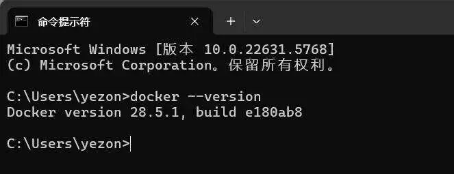 - 安装完后,系统托盘能看到鲸鱼图标,表示 Docker 已启动。也可以在命令提示符内用“docker --version”命令查看是否安装成功,如下图所示,正常会返回类似