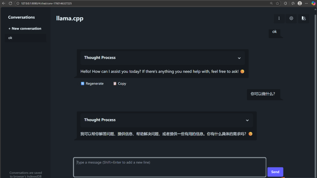 在浏览器中输入:http://localhost:8080 即可打开聊天界面,与你的专属AI助手对话