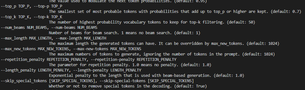 检验下是否安装成功(打印出一系列参数表明安装成功,如果想知道Llama Factory中不同参数的用处,也可以使用该命令来查看):