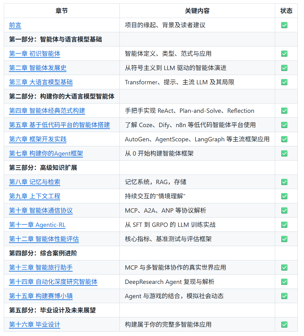 - ✅ 从零构建自己的智能体框架(Hello Agents)
