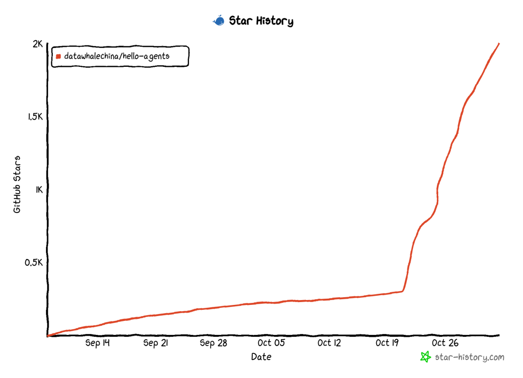 开源仅一周,《Hello-agents》从零开始的智能体原理与实践教程 GitHub Star 数量已经突破2.2k,成为智能体学习圈的“顶流教程”。