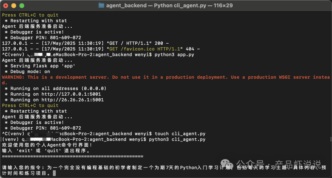 即使没有编程基础,你也可以按照以下步骤构建一个基础但功能完整的AI Agent(以下实践教程通过Manus生成,目前在本地已搭建Agent简单版,通过终端命令模式启动服务并执行任务):