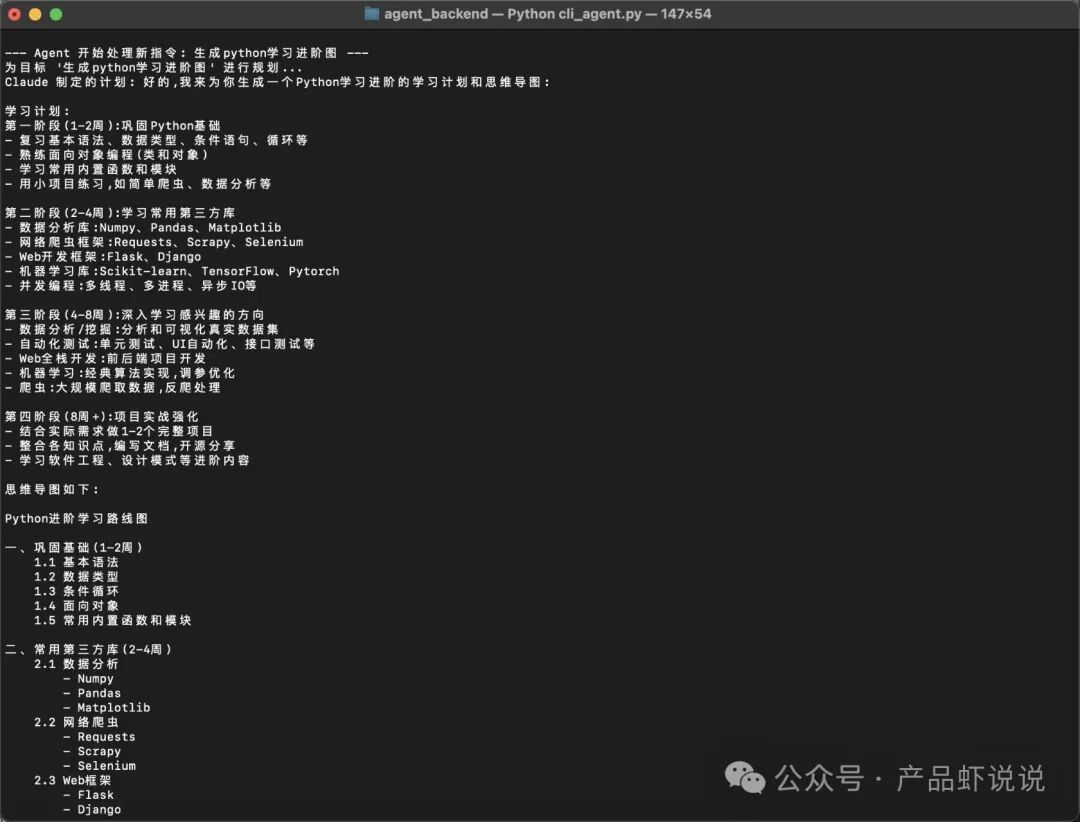 当 Agent 完成任务后,查看它生成的最终学习计划。