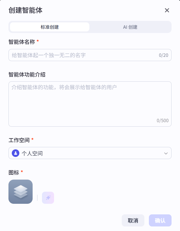 对于初学者,建议选择对话式创建,这样可以更直观地了解智能体的创建过程。