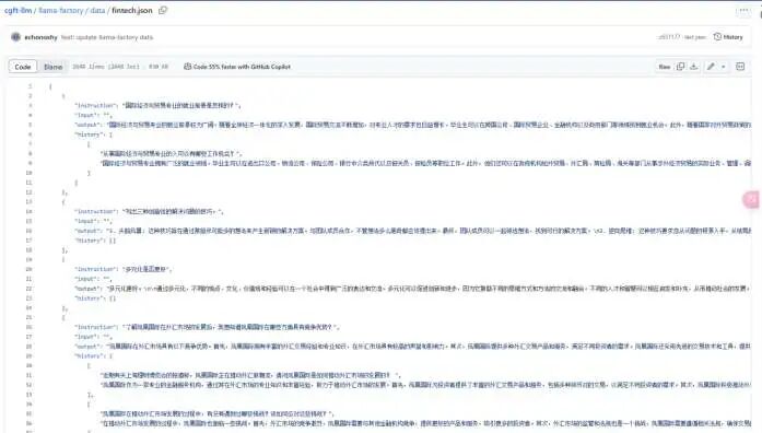 git clone https://github.com/echonoshy/cgft-llm.git cp cgft-llm/data/fintech.json /data/train/LLaMA-Factory/data/