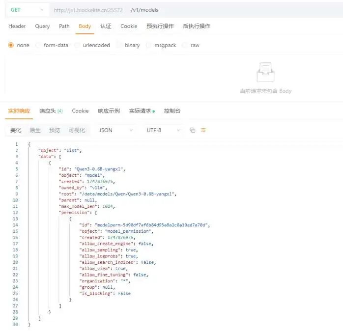 CUDA_VISIBLE_DEVICES=0 nohup python3 -m vllm.entrypoints.openai.api_server \ --model=/data/models/Qwen/Qwen3-0.6B-yangxl \ --served-model-name=Qwen3-0.6B-yangxl \ --dtype=bfloat16 \ --trust-remote-code \ --device=cuda \ --max-model-len=1024 \ --tensor-parallel-size=1 \ --gpu-memory-utilization=0.85 \ --enable-reasoning \ --reasoning-parser deepseek_r1 \ --port 8802 \ --api-key token-123456 &