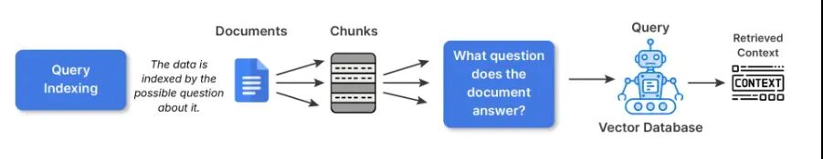 在查询索引的情况下,原始文本不会被直接嵌入。相反,我们会生成针对每个知识块的几个假想问题,然后嵌入这些问题文本。这样做部分是为了弥合用户提问方式与文档描述事物方式之间的语义鸿沟。