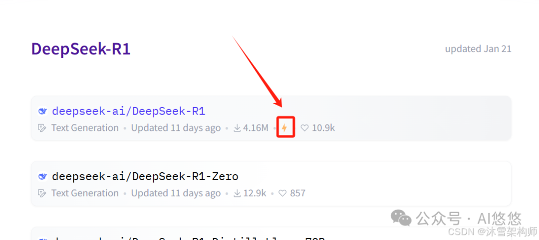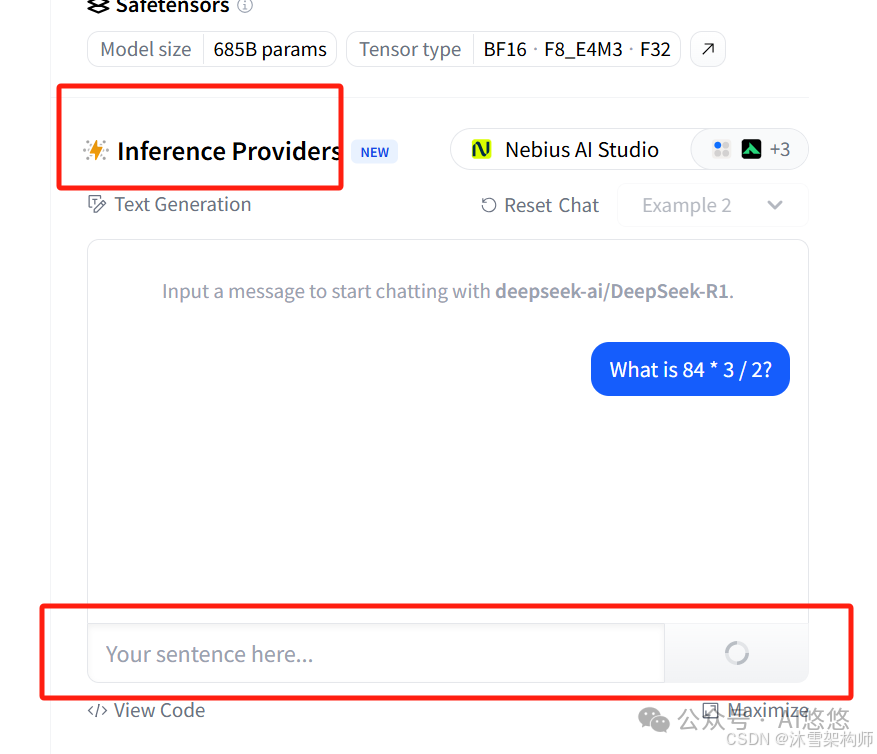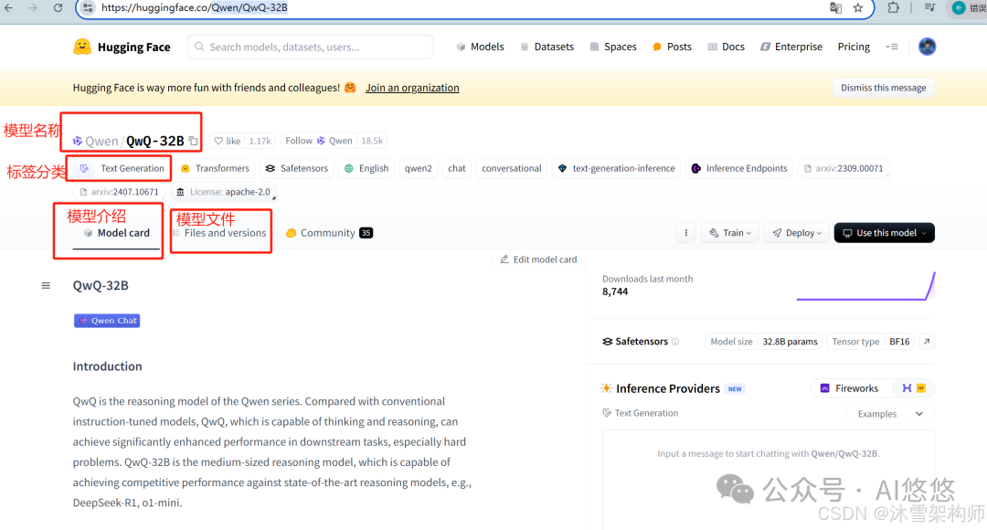 hugging face平台上有很多大模型提供接口试用,列表有黄色闪电标记,详情的右侧有Inference Providers。