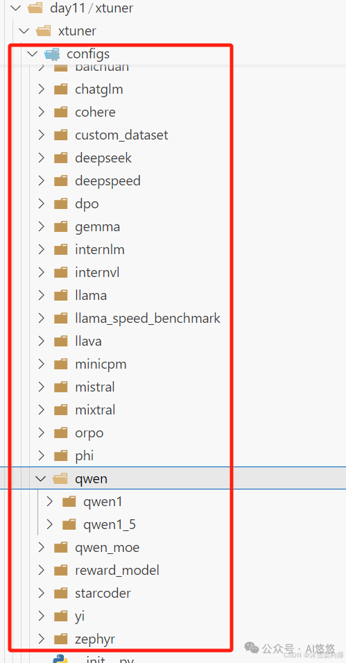看源码就可以看到XTuner支持哪些大模型了。目录路径:xtuner/xtuner/configs