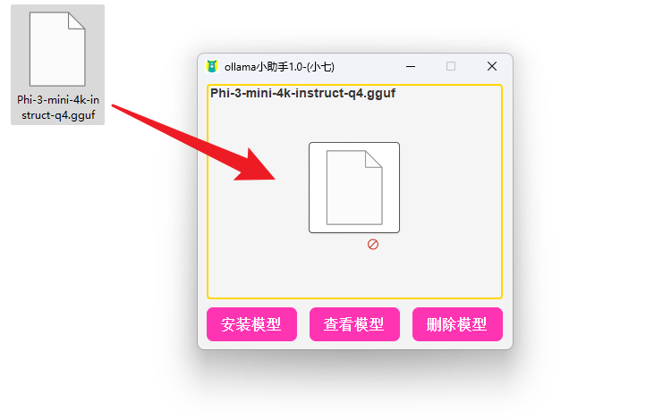 首先将GGUF格式的大模型拖拽到Ollama小助手的窗口中。