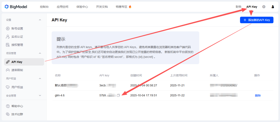 按照截图所示拿到一个API Key,先保存,后面会用到。