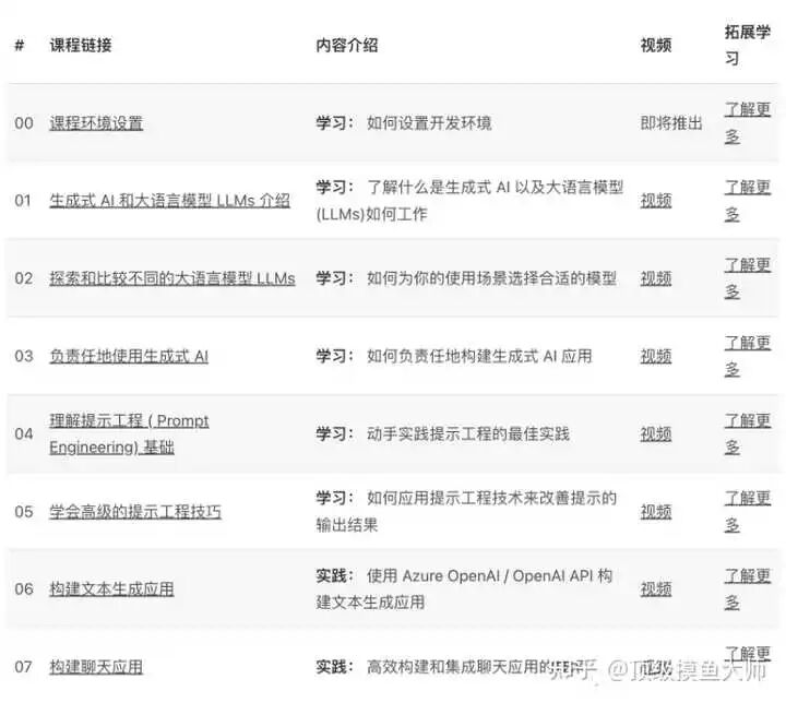 这个课程假设你是纯新手,从最基本的"什么是生成式AI"和"大语言模型如何工作"讲起,语言简单接地气,还配有视频解说,学起来一点不费劲。