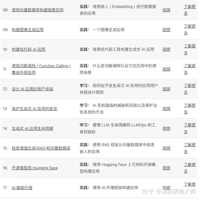 对想深入AI领域的朋友来说,第18课讲解如何"微调"大语言模型,让模型更适合特定需求;第17课介绍AI代理框架,教你如何构建能自主完成任务的AI助手。
