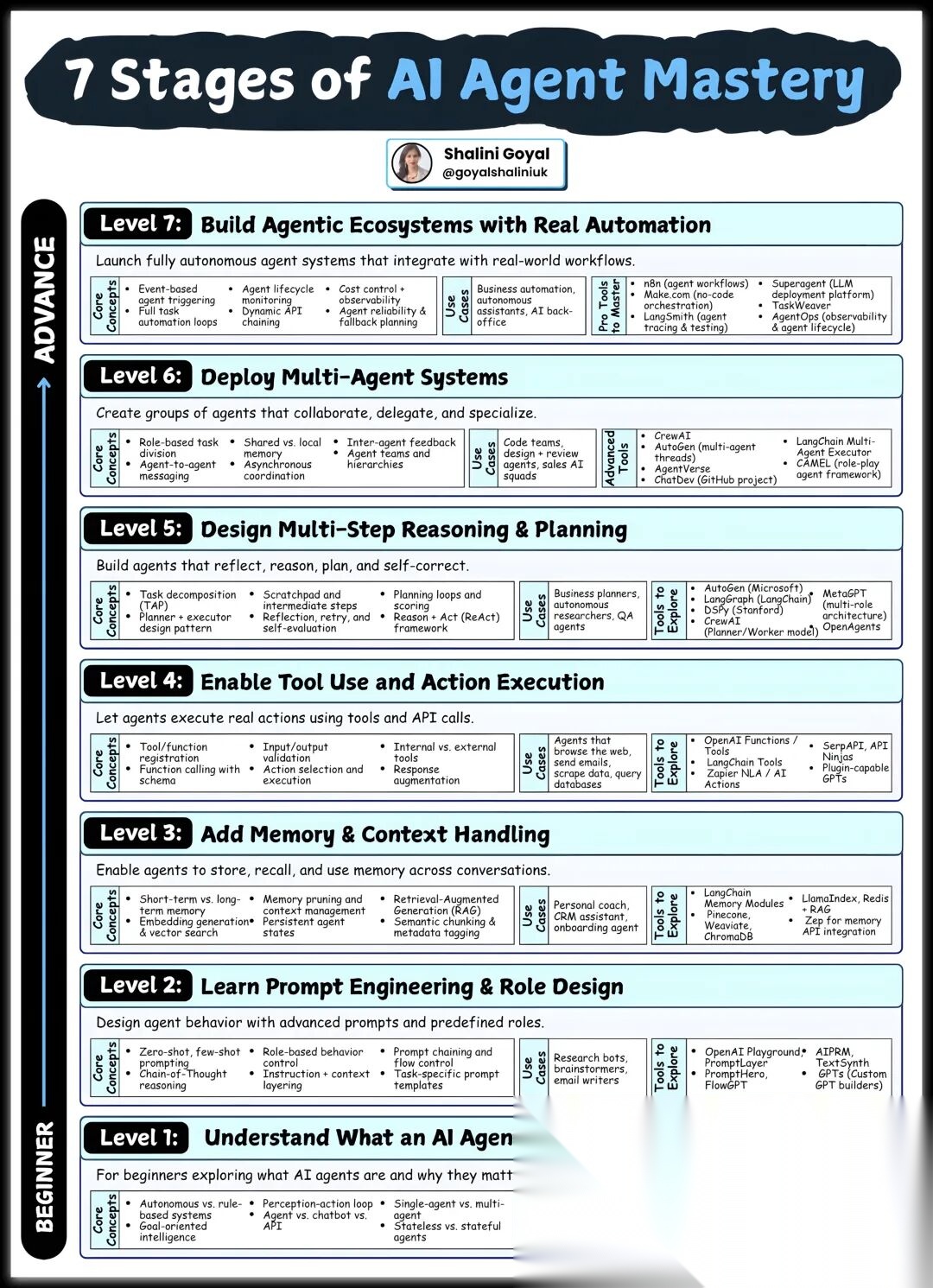 答案就在「7 Stages of AI Agent Mastery」这个革命性框架中。
