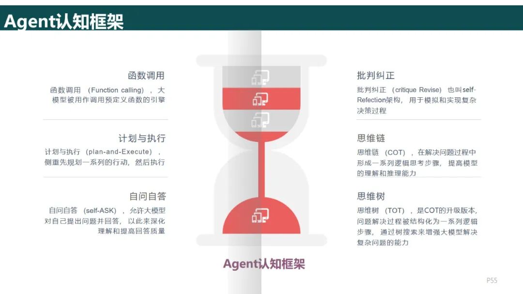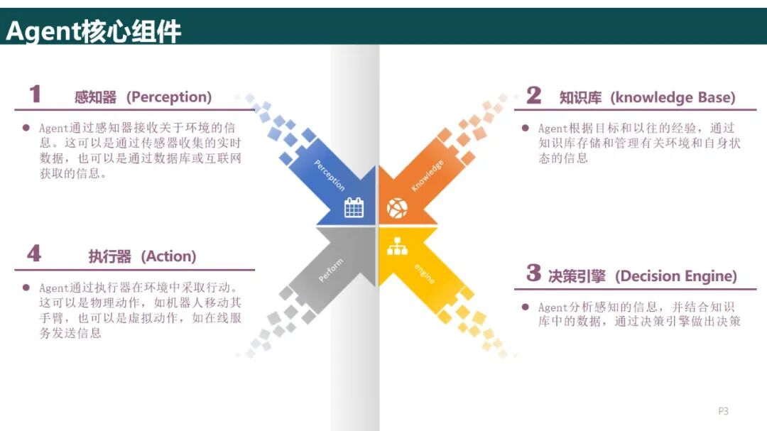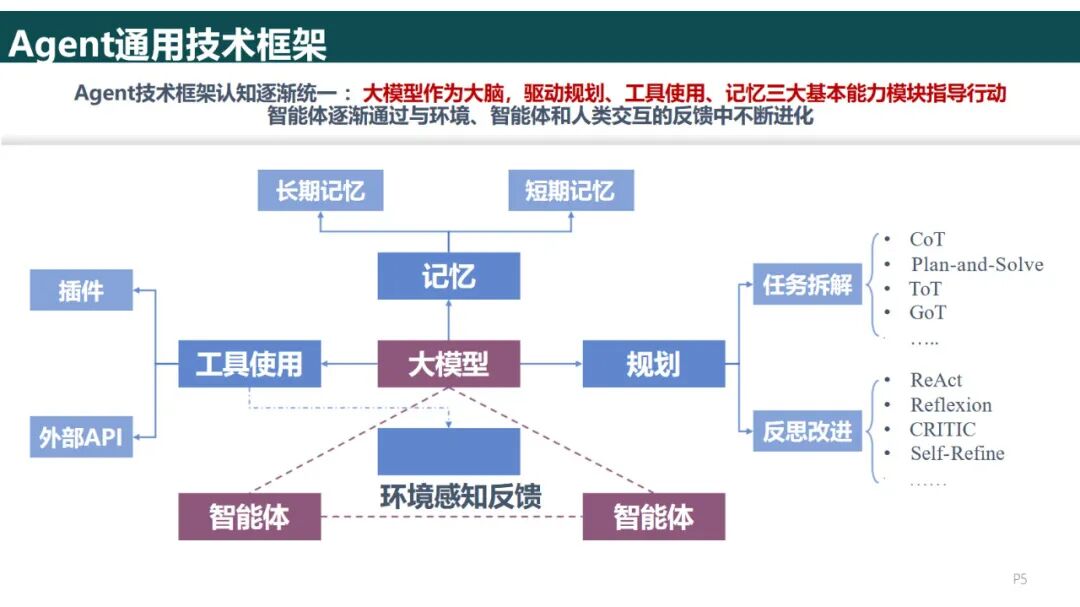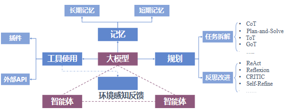 决策模块采用ReAct、CoT等框架进行推理,如客户服务系统的决策过程是“询问用户→获取知识库→给出答案”的递归过程,而对于比较复杂的任务(如工程计划)则采用Plan—and—Execute分解为多个子任务来完成;