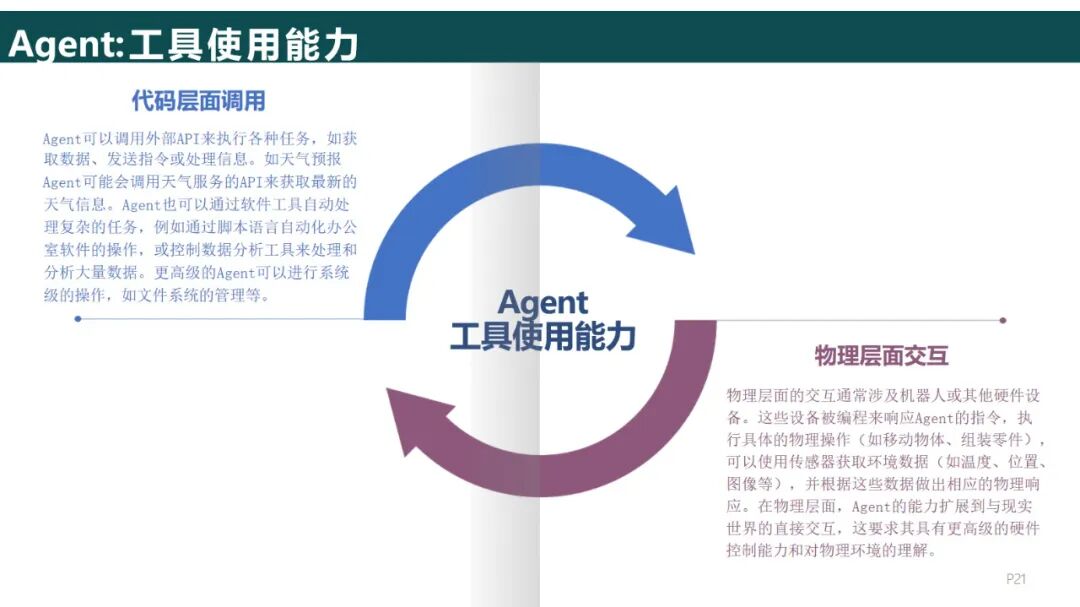 执行部分:在虚拟情景中,API被调用(例如发送电子邮件、生成报告等),在实体情景中,API被对接到硬件界面(例如机械臂的控制命令等)。