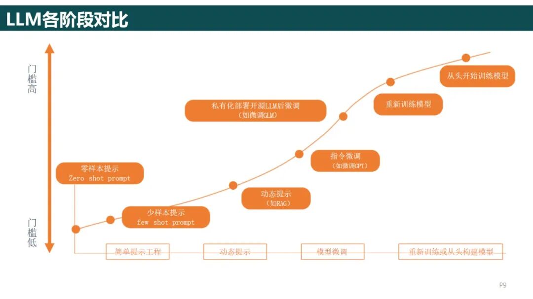 大型模式选择:通用场景选择GPT3.5/4,ChatGLM-4,对于垂直的行业大型模式(比如医疗)可微调行业大模型;