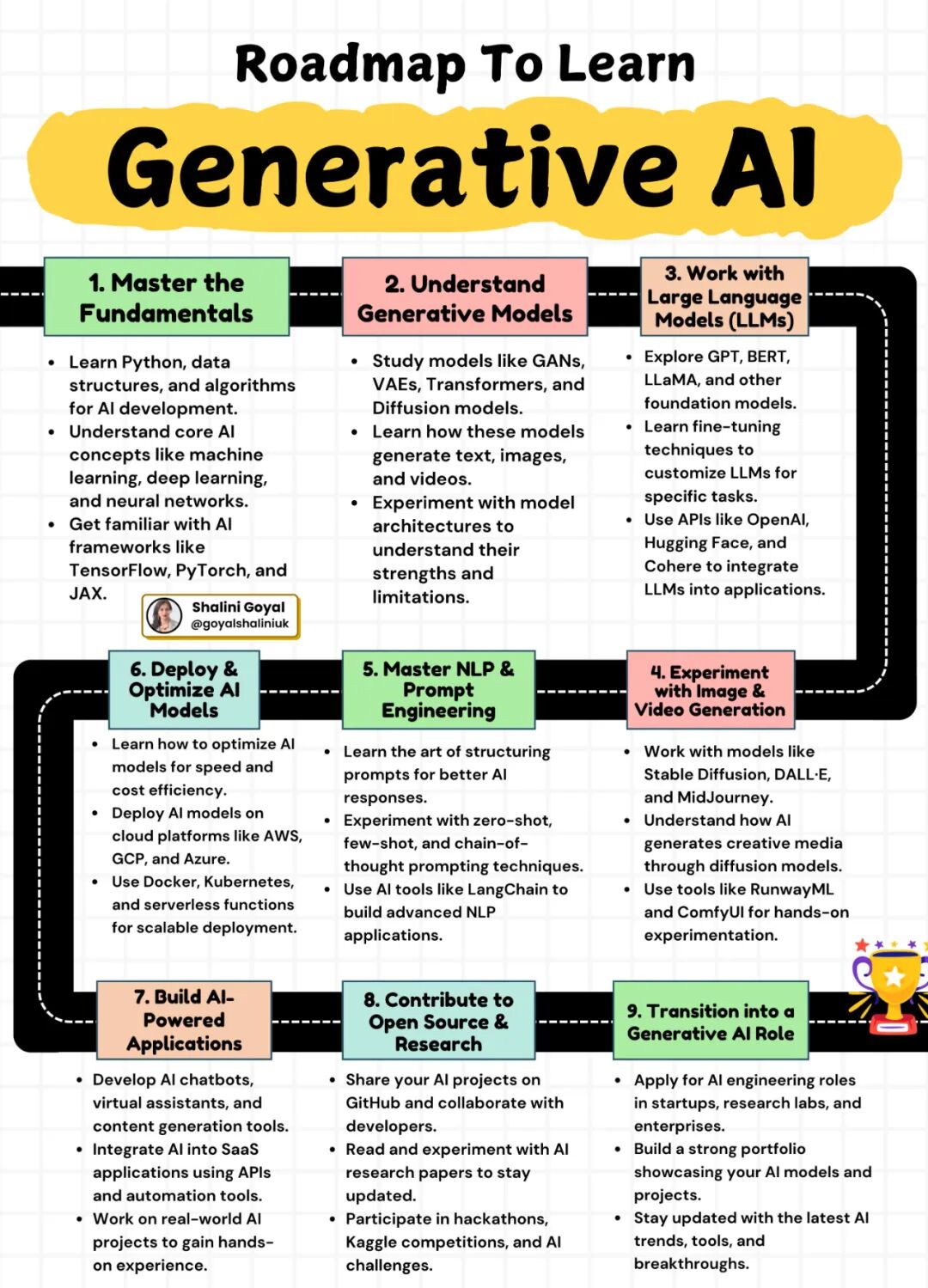 还在为AI热潮焦虑吗?别只停留在“哇塞”了,不如一起把未来装进脑子!今天给大家带来一份超详细、超实用的【生成式AI学习路线图】!
