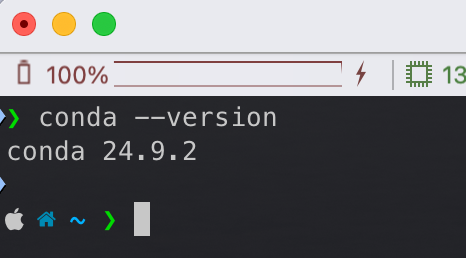 安装完成后,打开终端(Windows 用户可以使用 Anaconda Prompt 或 PowerShell),输入以下命令验证 conda 是否安装成功: