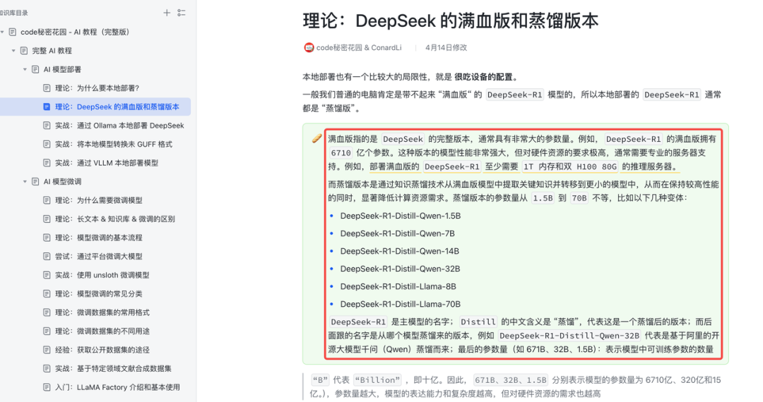 在之前 DeepSeek 的教程中,我们已经介绍了,在模型名称中,Distill 代表蒸馏过的模型,也了解了模型名称中的参数量表示: