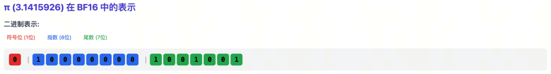 - BF16(脑浮点):;16 位 = 1 位符号 + 8 位指数 + 7 位尾数,范围与 FP32 相同(±3.4×10³⁸),但尾数更短。
