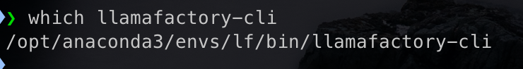 然后我们测试执行 which llamafactory-cli 可以发现,llamafactory 被安装在了 conda 创建的虚拟环境目录下: