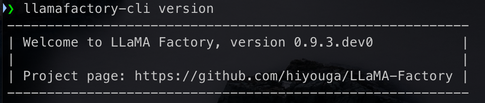 依赖安装完成后,我们执行 llamafactory-cli version 验证安装情况: