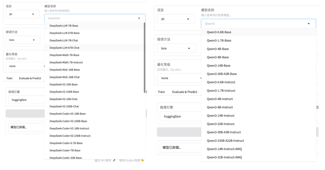 - 多种加速技巧:支持 FlashAttention-2、Unsloth 等加速算子。