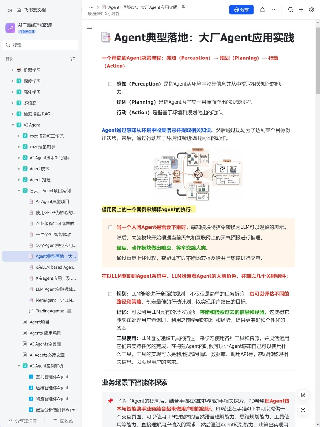 · AI Agent的核心循环:感知(Perception)-> 规划(Planning)-> 行动(Action)-> 观察(Observation)。