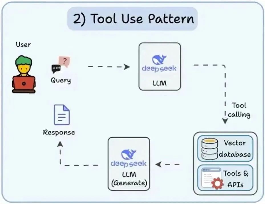 Agent能够调用外部工具和API(如向量数据库、搜索引擎等)获取额外信息,然后利用这些信息生成更全面准确的回答。