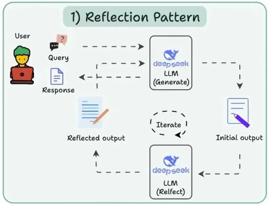 AI首先生成初始回答,然后将其传递给自己或另一个模型进行"反思"评估,通过迭代改进最终向用户提供更优质的回答。