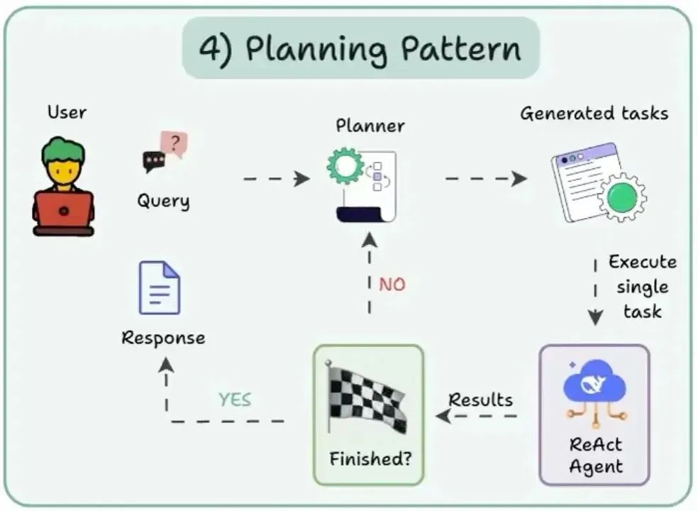 Agent面对复杂任务时,先制定详细的执行计划,将大任务分解为可管理的子任务,然后逐一执行并检查完成情况,直到整个任务完成。