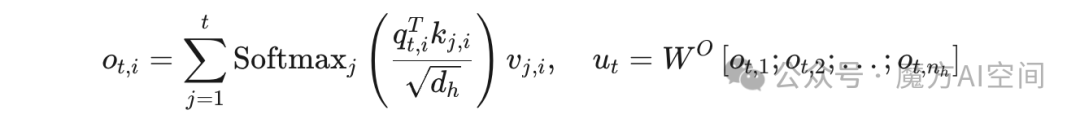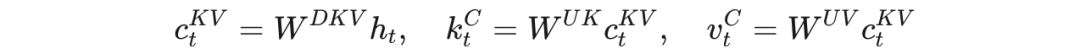 **多头潜在注意力(MLA):**一种新的注意力机制,通过低秩键值联合压缩来显著减少推理时的键值缓存,从而提高推理效率。MLA的计算过程如下: