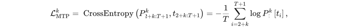 - **多令牌预测(MTP)目标:**通过在每个位置预测多个未来token,增加训练信号的密度,从而提高模型性能。其训练目标如下: