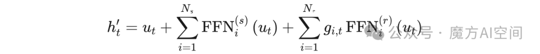 DeepSeekMoE:通过细粒度的专家分割和共享专家隔离来实现更高效的模型训练。DeepSeekMoE的基本思想是将专家分割成更细的粒度以提高专家的专业化,并通过隔离一些共享专家来缓解路由专家之间的知识冗余。具体计算过程如下: