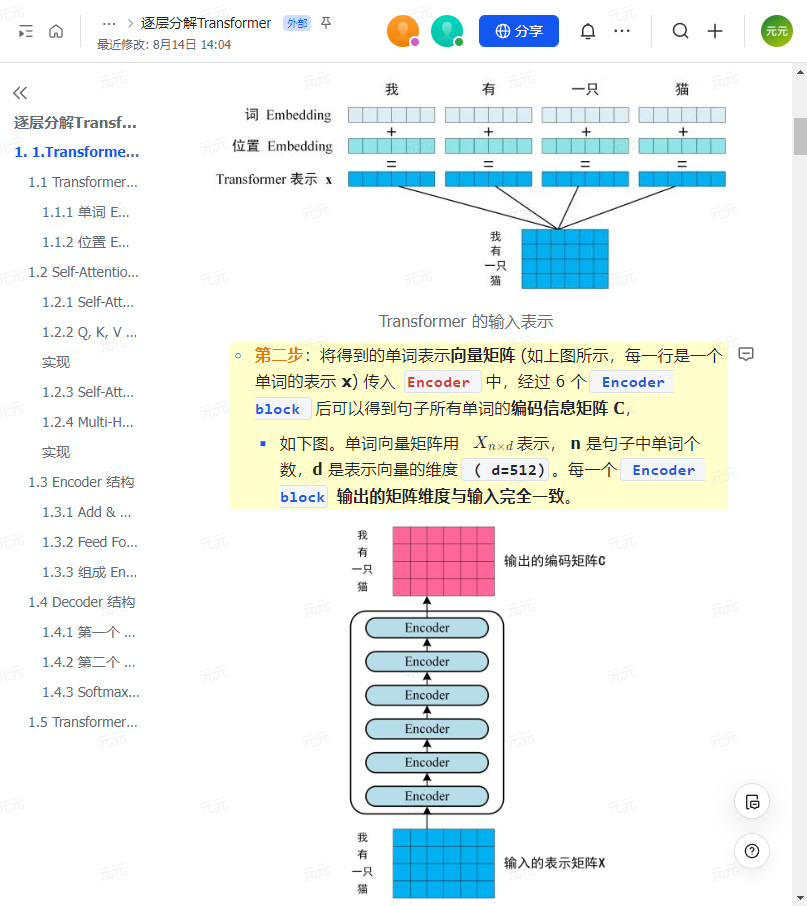 最后一个 Encoder block 输出的矩阵就是编码信息矩阵 C,这一矩阵后续会用到 Decoder 中。