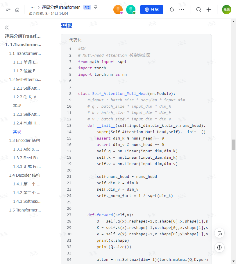 1)可以看到 Encoder block包含一个 Multi-Head Attention