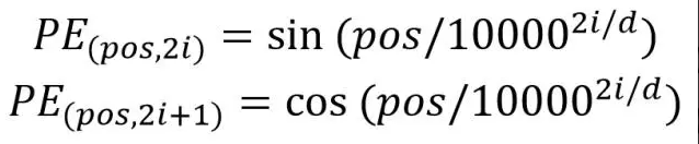 其中,pos 表示单词在句子中的位置索引,d 代表位置编码(PE)的维度(与词向量维度相同),2i 对应偶数维度的编号,2i+1 对应奇数维度的编号(需满足 2i≤d 且 2i+1≤d)。
