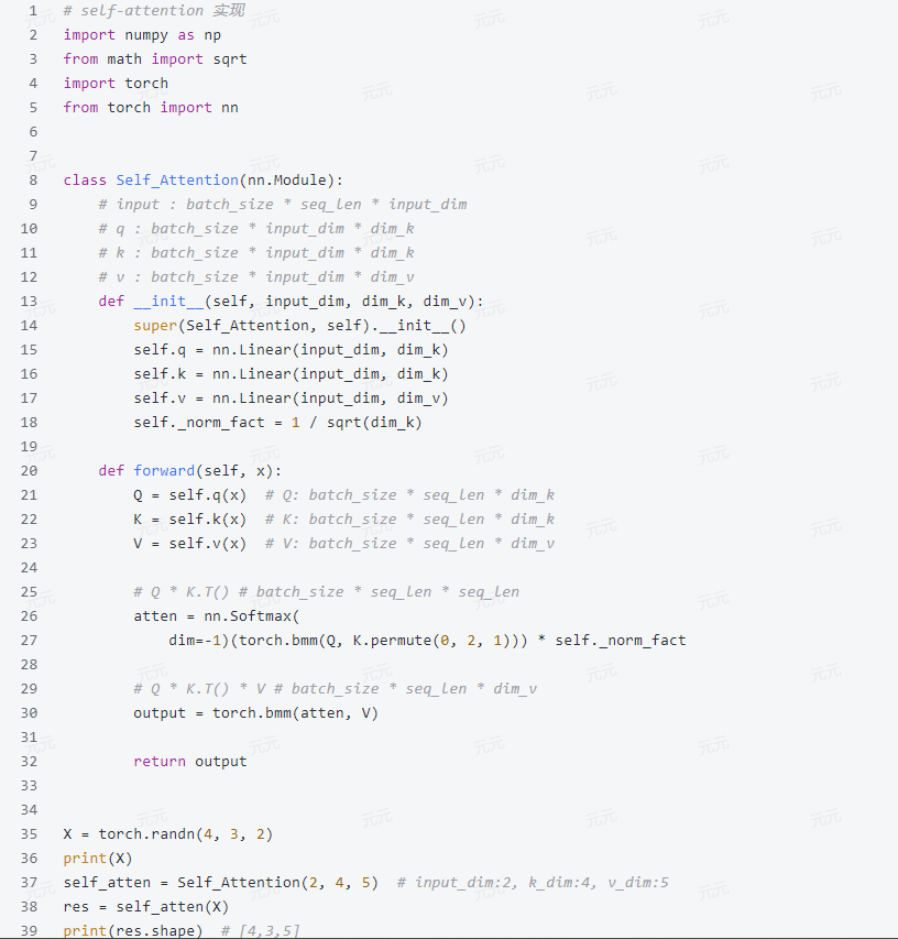 得到矩阵 Q,K,V之后就可以计算出 Self-Attention 的输出了,计算的公式如下: