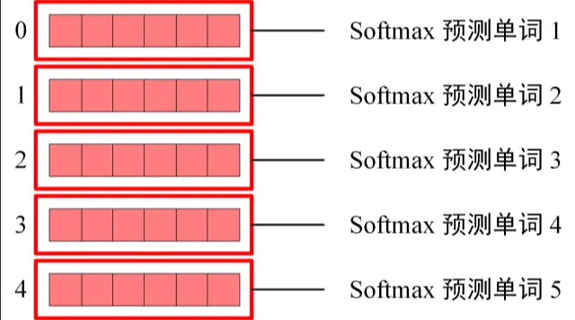Softmax根据输出矩阵的每一行预测下一个单词:
