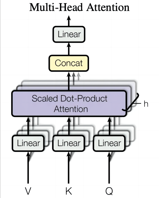 而 Multi-Head Attention 的本质是多个 Self-Attention 的集成结构,论文中的 Multi-Head Attention 架构图如图所示。