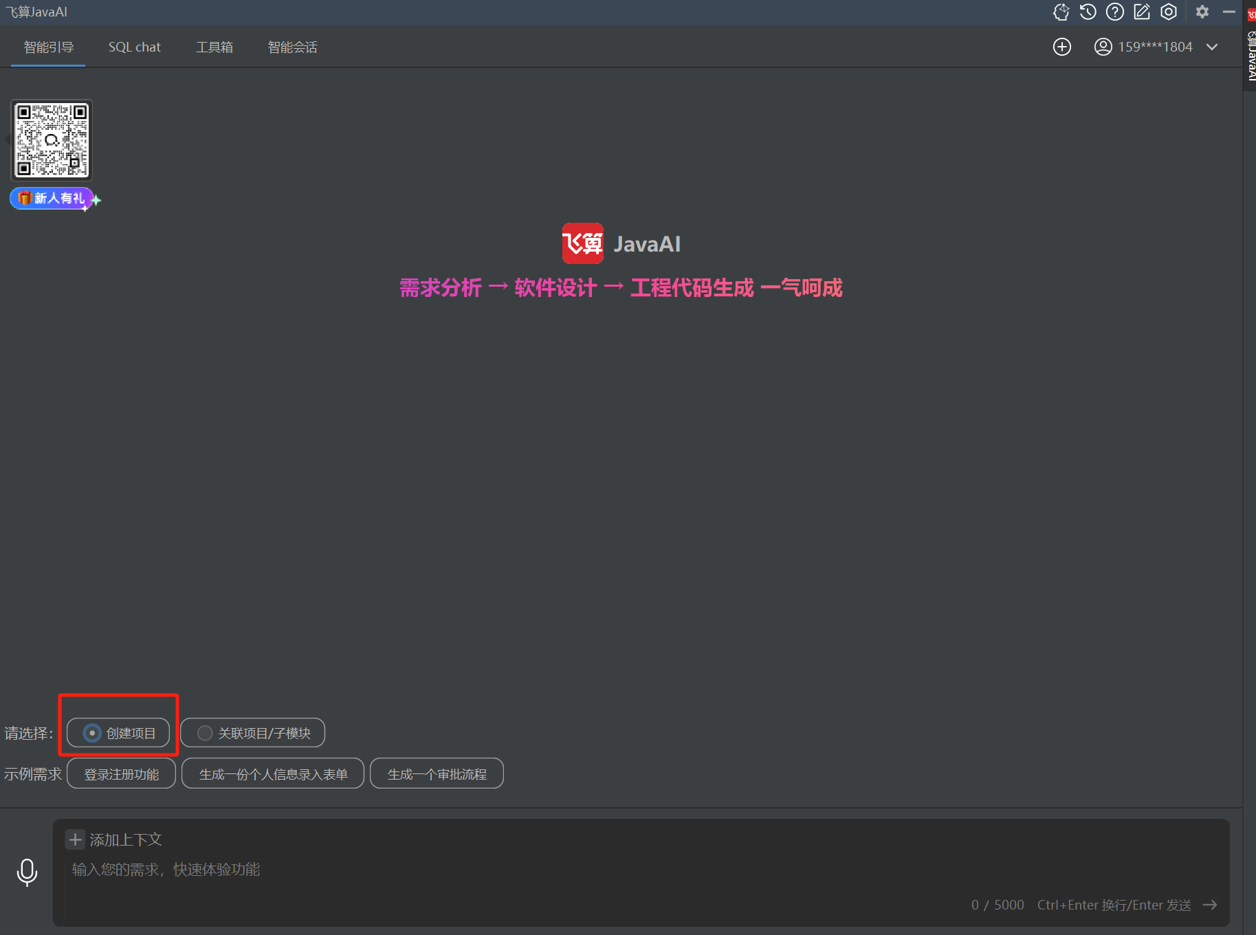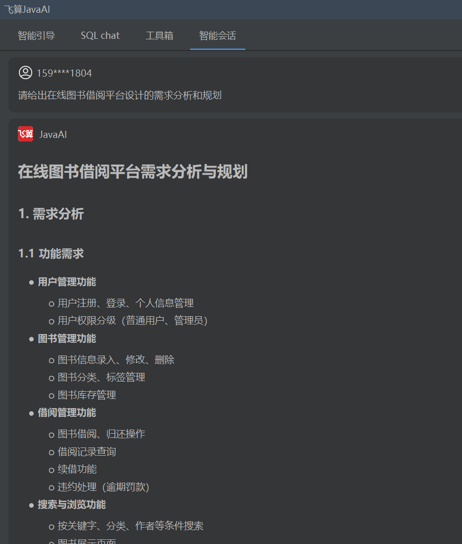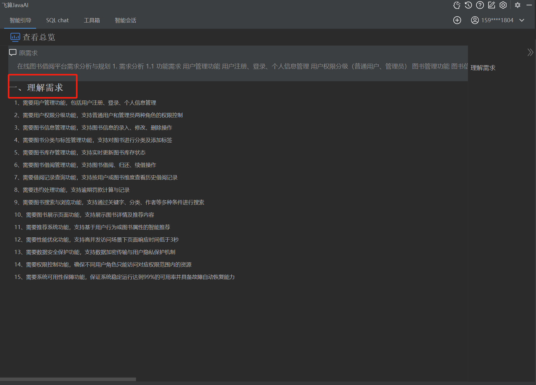 我们可以直接在飞算Java AI里面自带的智能会话功能,进行我们项目所需要的需求分析和规划,自产自销了属于是~