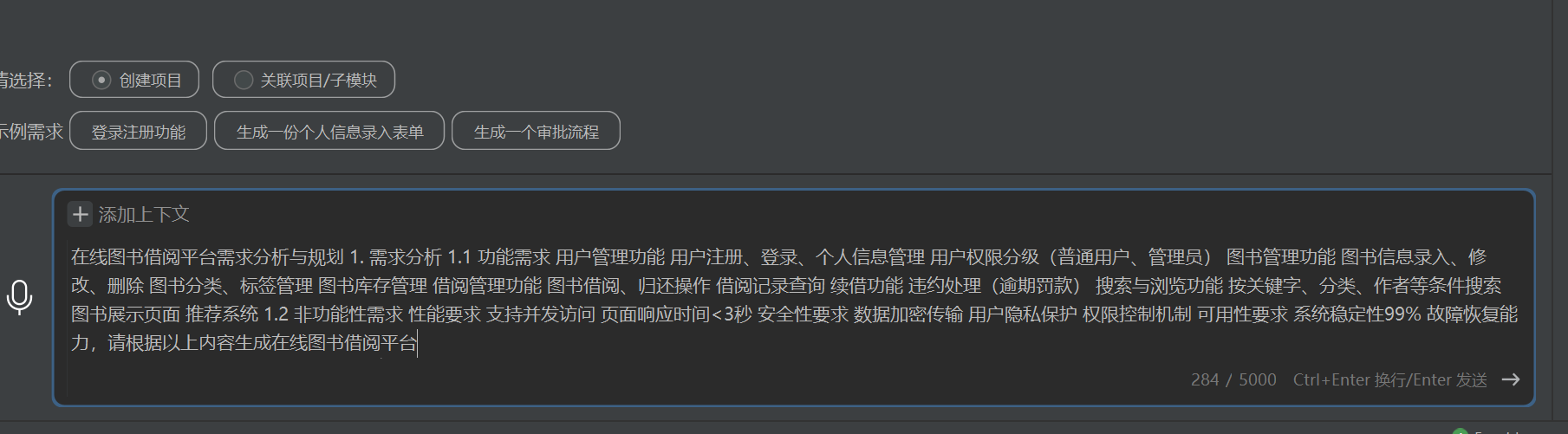 接着,我们复制粘贴之前在智能会话中生成的需求分析和规划,直接开始生成