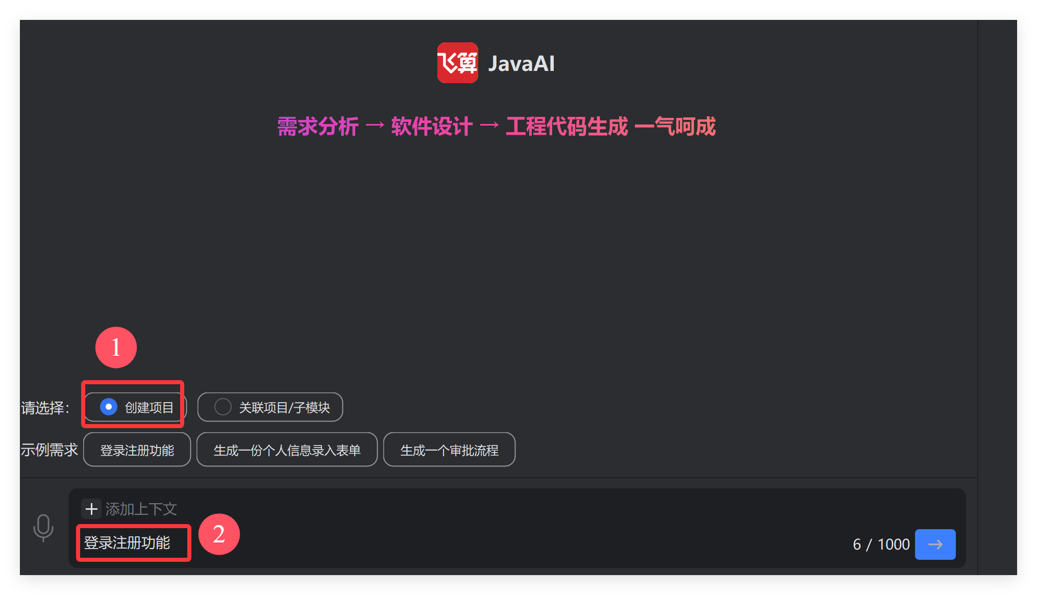 我们让飞算JavaAI帮我们实现一个登录注册功能